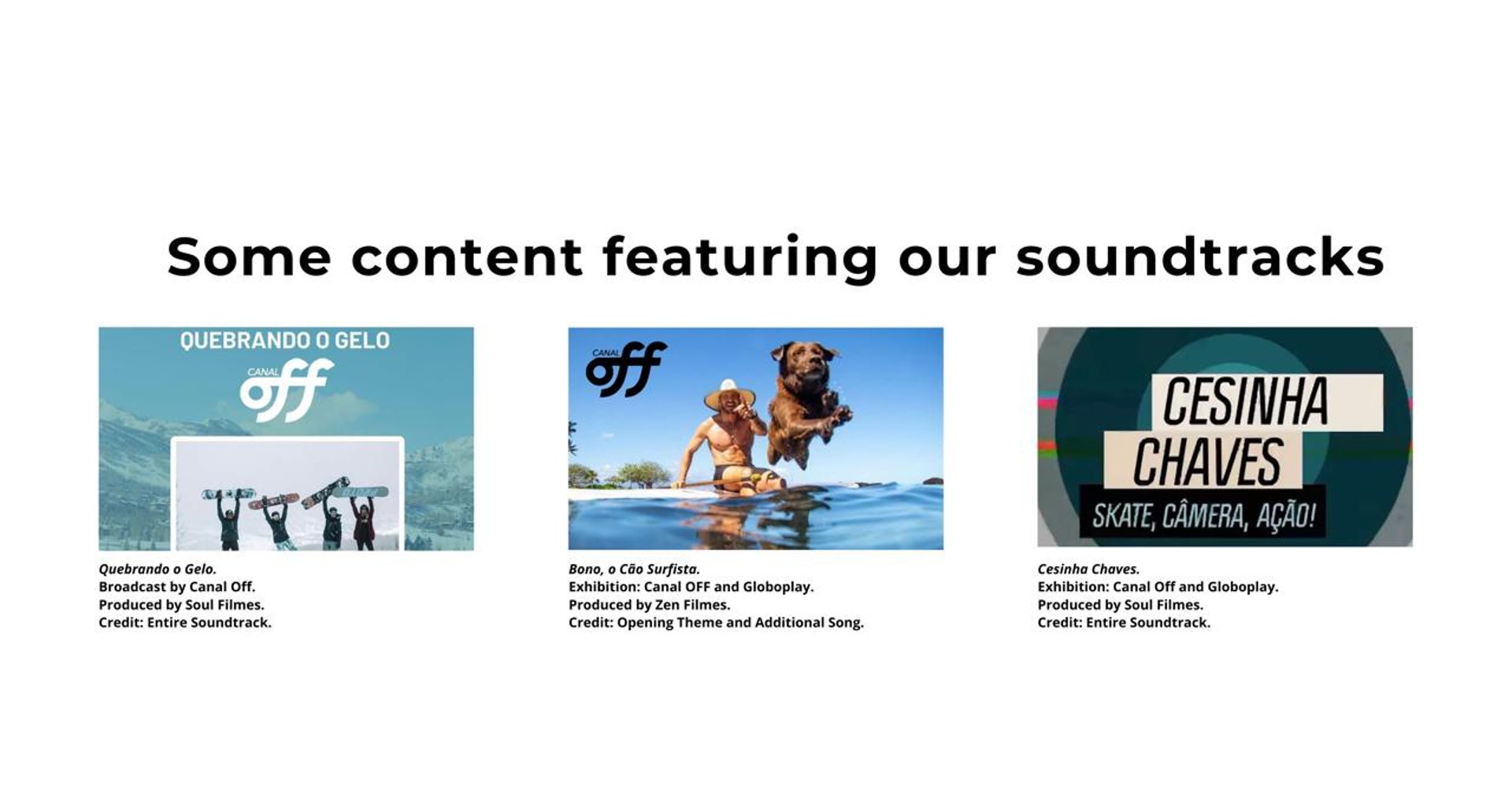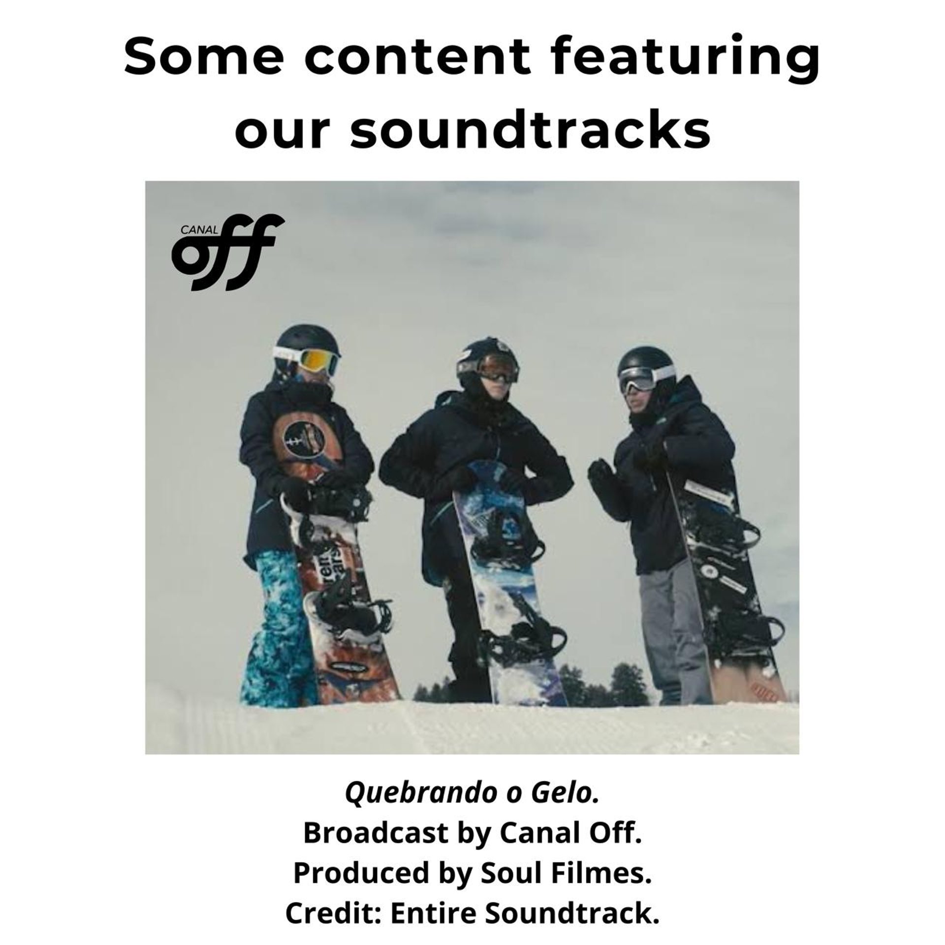 Original soundtrack composition and production for the documentary Quebrando o Gelo, produced by Soul Filmes and broadcast on OFF Channel.