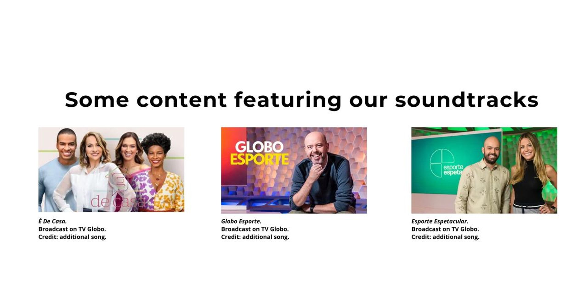 A curated selection of our key projects in Soundtracks, Original Music, and Sound Branding.