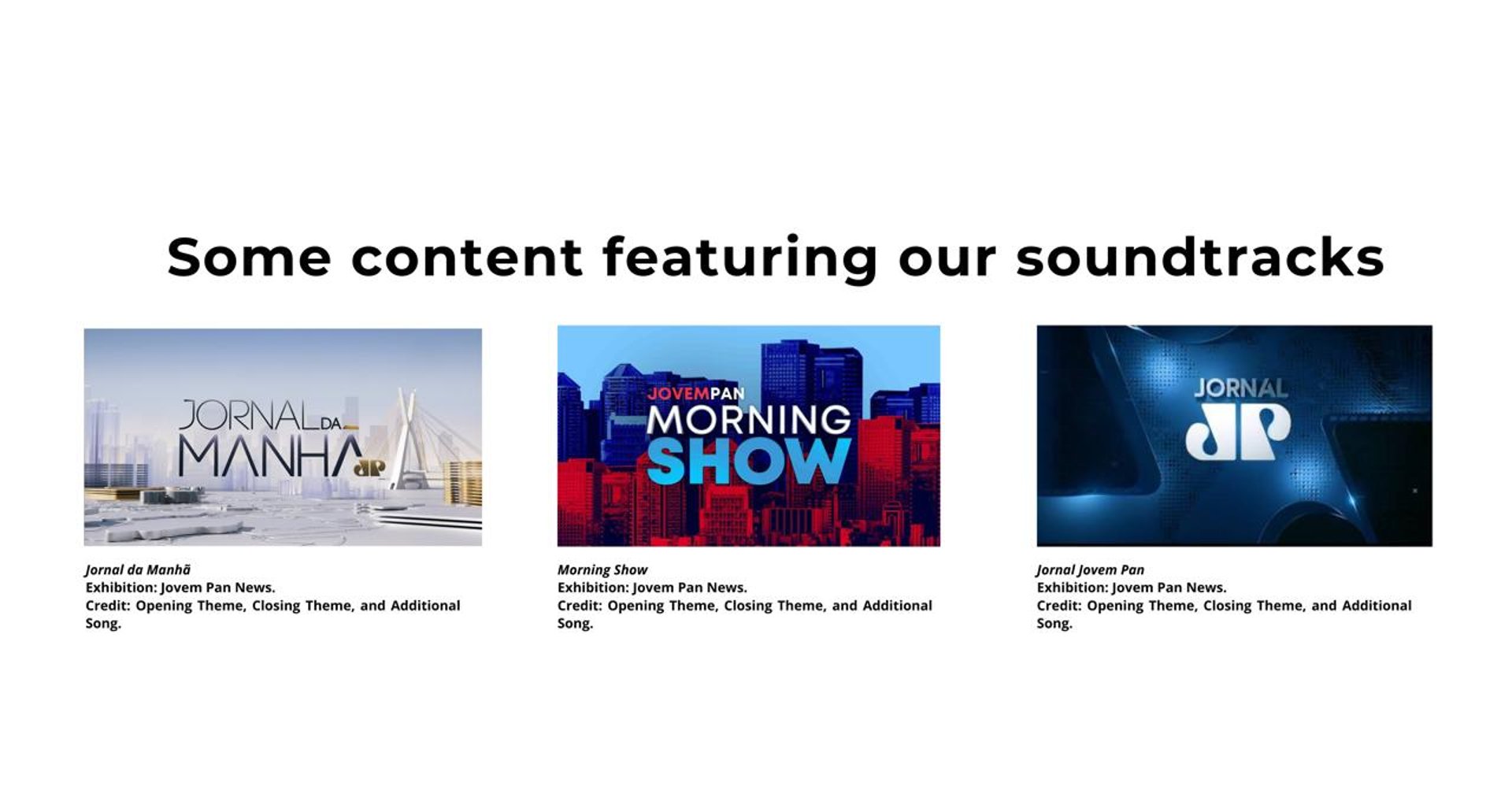 Composition and production of the opening theme for Morning Show, a daily program on Jovem Pan News focused on entertainment, culture, and current affairs.