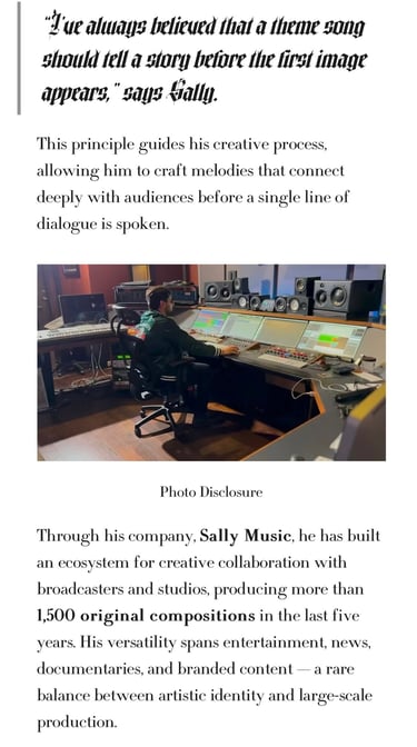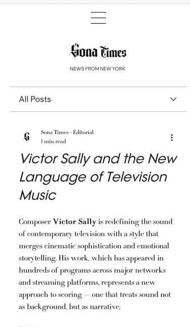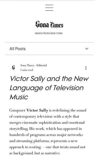 Highlight on SonaTimes featuring our producer Victor Sally and his innovative approach to music for television.